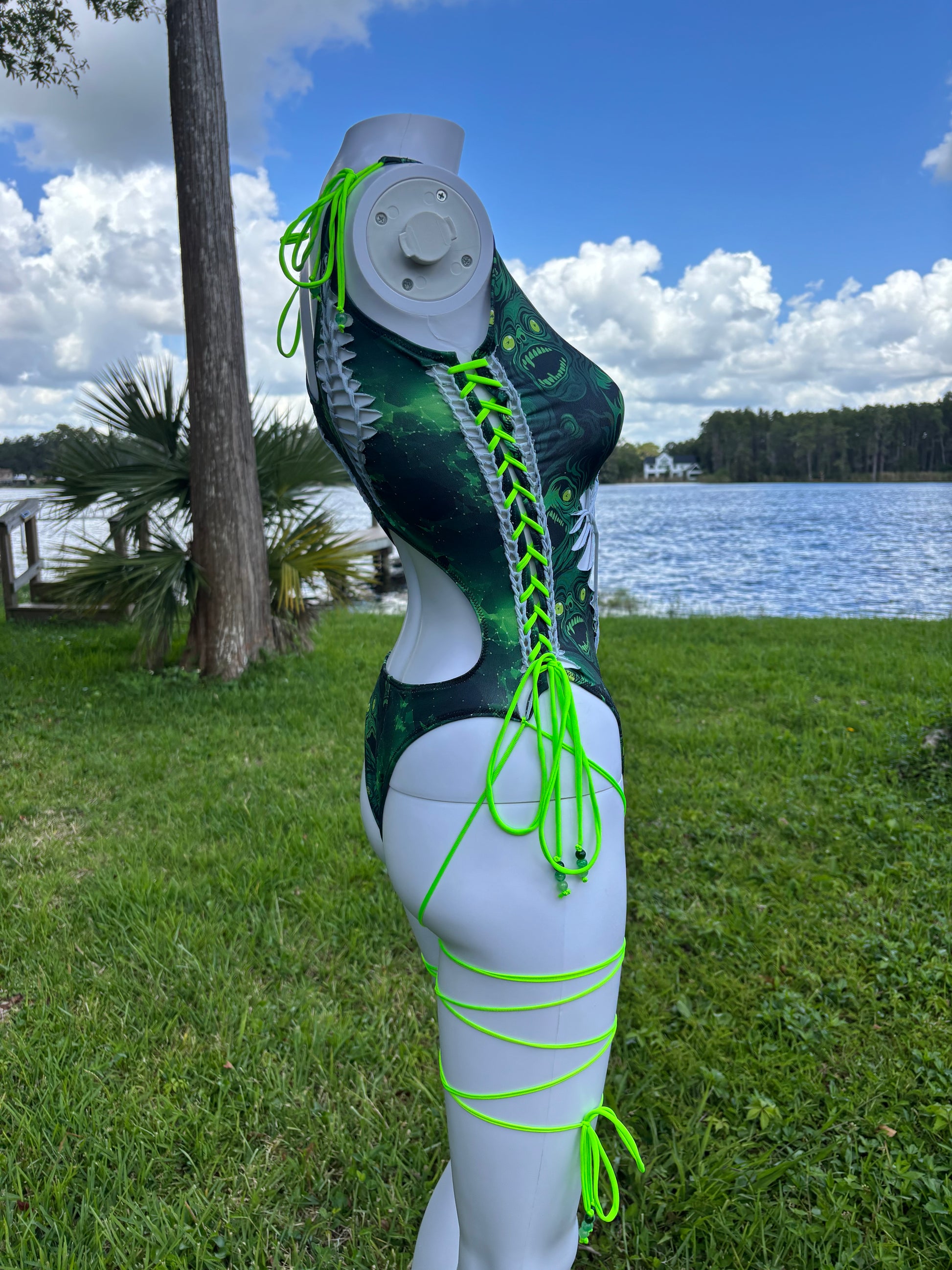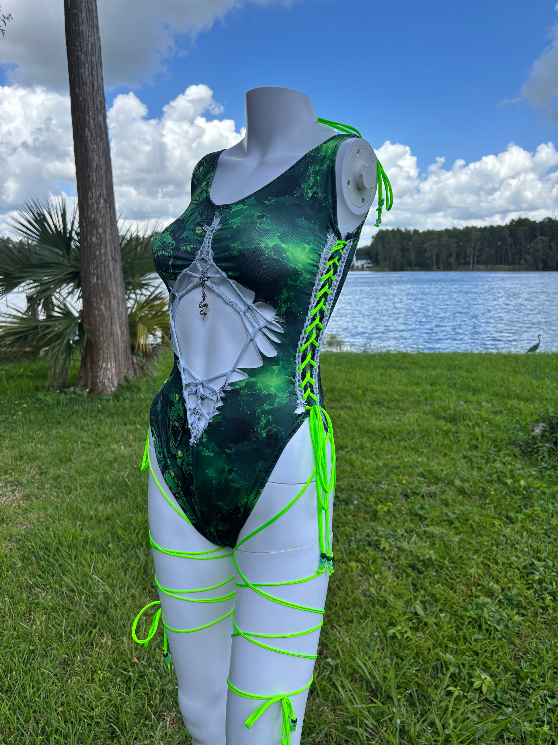 This is a handmade braided bodysuit that's made with sport lycra fabric. The fabric is 4-way stretch spandex/swimsuit material. Please follow all washing instructions.